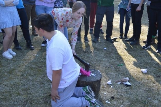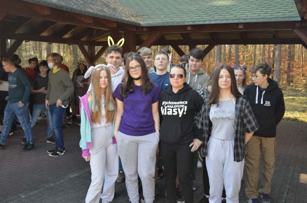 . Nasz samorząd szkolny przygotował na ten dzień wiele zabaw. Uczniowie klasy IV mieli również okazję ostatecznie i radośnie przyjąć do szkolnej braci przedstawicieli tegorocznych klas I i II technikum oraz szkoły branżowej. Wraz z wychowawcami symbolicznie odcięli ogony naszym „kotom” i przetestowali nietuzinkowe umiejętności młodych entuzjastów lasu w konkurencji o nazwie „Bieg zajączka”